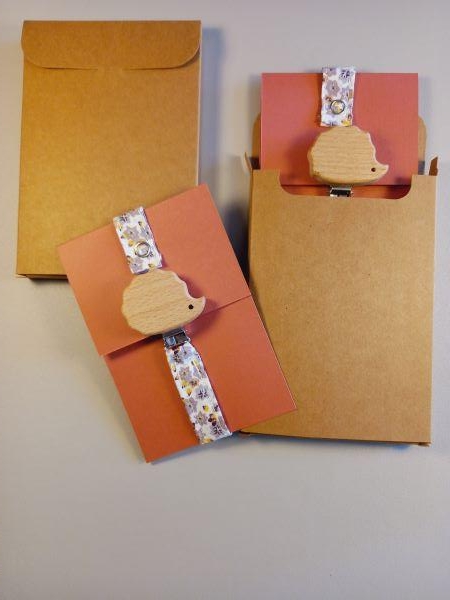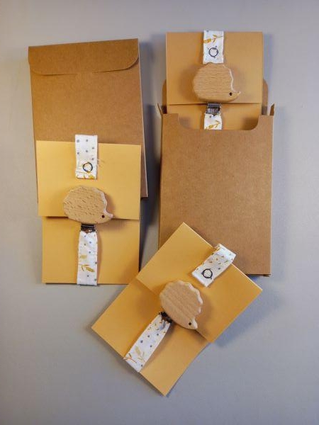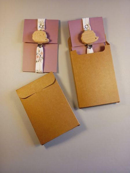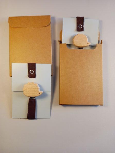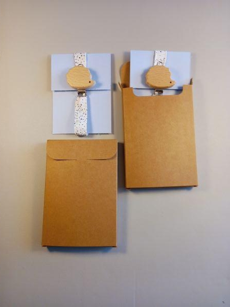Présenté sur une petite carte de couleur dans une boite en carton