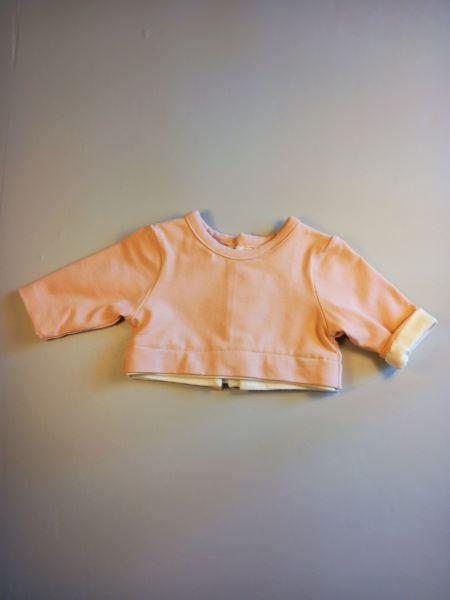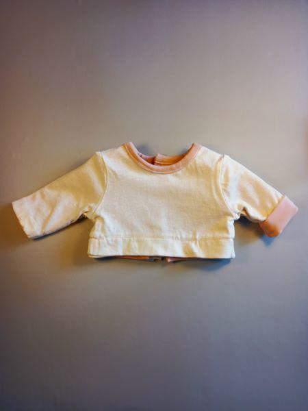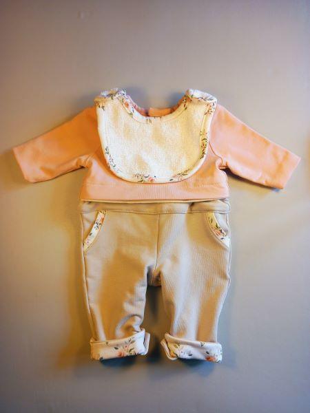 Les vêtements de la collection Petit Teuf s'attachent les uns aux autres, ils n'impactent aucunement votre bébé, ni à la taille, ni aux chevilles comme le feraient des vêtements classiques : le bas se boutonne au haut qui est réversible et sur lequel vient s'ajuster d'un clic de pressions le petit bavoir assorti