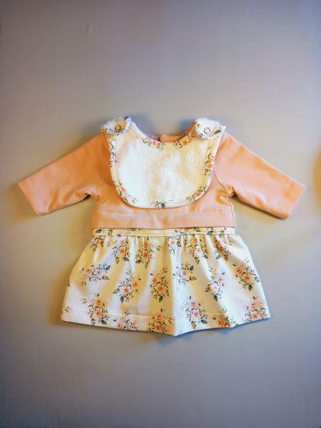 C'est le magicien du bébé 2.0 qui vous permet de choisir la couleur du haut blanc naturel ou rose pâle et d'interchanger la jupe fleurie pour le pantalon