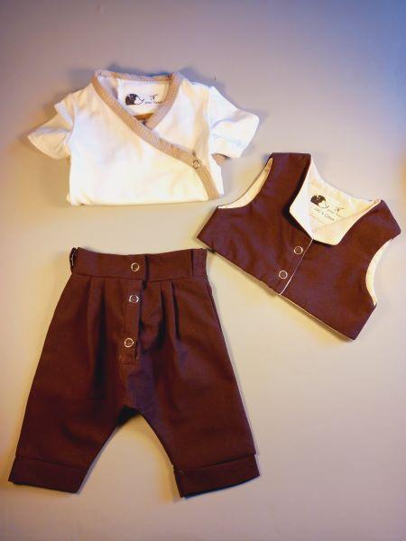 Le pantalon chocolat seul et le body d'été sont encore disponibles séparément dans toutes les tailles de la naissance jusqu'à 12 mois