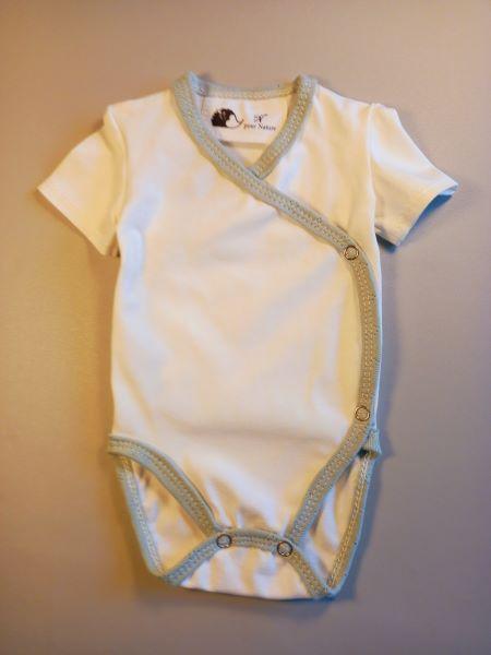 Les bodys : l'un à manches longues en coton bio molletonné blanc ( 95%coton , 5% élasthanne ) et l'autre à manches courtes en coton biologique écru ( 95% coton , 5% élastanne ) permettant de jongler avec la météo du printemps, et de l'automne