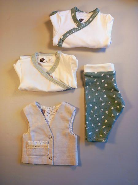 Bel assortiment de vêtements fait en France de manière artisanale, en coton biologique pour filles ou garçons, idéal pour un cadeau de naissance ou pour les fêtes
