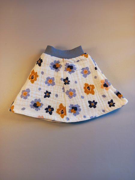 Jupe fleurie à pans en double gaze de coton bio pour habiller bébé et nourrissons de la taille naissance jusqu'à 12 mois