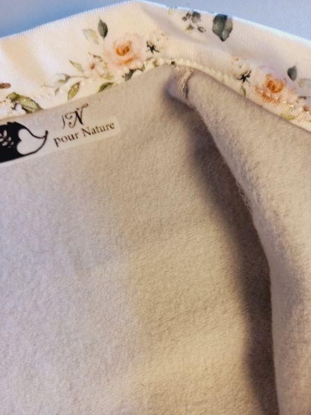 Le fil de couture est 100% coton, fabriqué en France, les fermetures par boutons pressions ne sont pas colorées. Les étiquettes, s'il y en a, sont en coton.