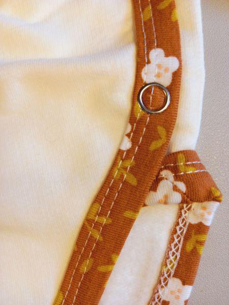 Le fil de couture est 100% coton, fabriqué en France, les fermetures par boutons pressions ne sont pas colorées. Les étiquettes, s'il y en a, sont en coton.