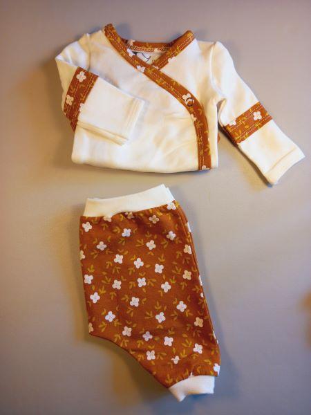 Ce petit sarouel joyeux et coloré viendra égayer un sweat-shirt uni écru mais il est aussi le complément indispensable de son homologue, le body à brassards brique de notre site.